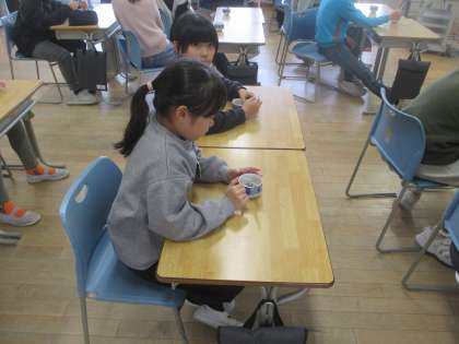 4年生の理科では、物のあたたまり方の学習が始まりました。今日はスプーンをお湯に入れたとき、どのようにあたたまっていくのかを調べました。