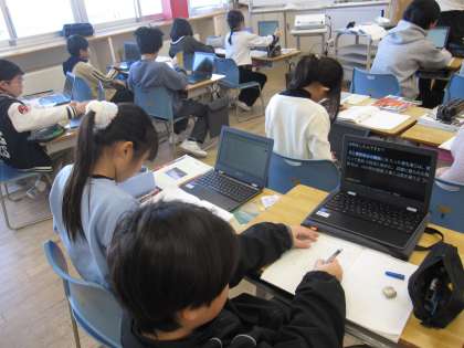 社会では、郷土を開いた人々について学習しています。十二貫野用水を開いた椎名道山の功績について調べていました。