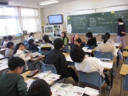 社会科の時間です。昔から伝わる伝統工業について学習していました。富山県の高岡銅器も教科書に出ていました。