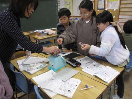 算数では重さの学習をしています。実際に身の回りの物をはかりを使って調べていました。