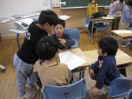明日、集会をするため、係に分かれて準備を進めていました。