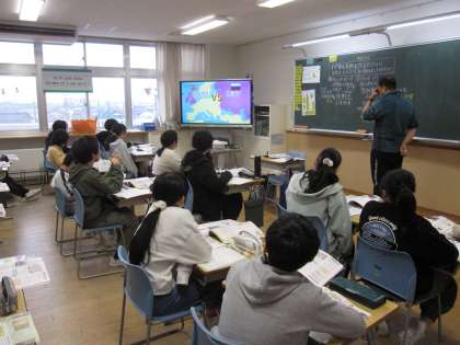 社会では、不平等条約とその条約改正について学習していました。ノートを丁寧に書いています。
