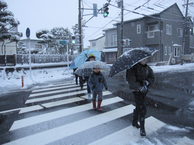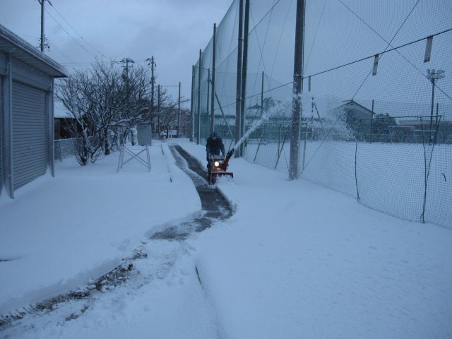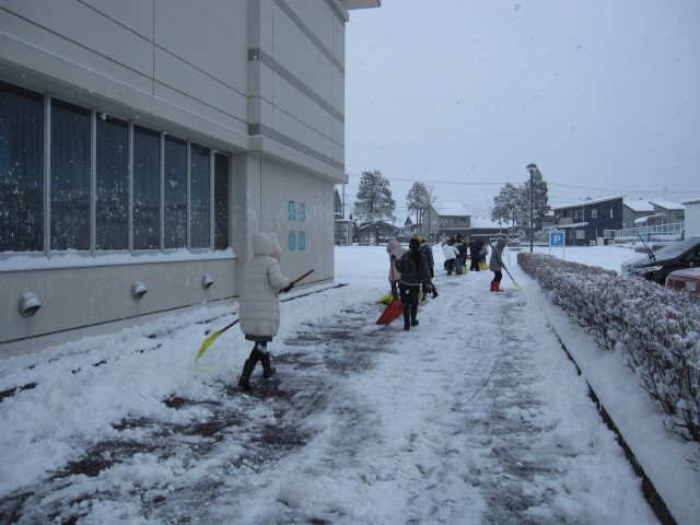 今朝は気温が下がり、雪が積もりました。朝早くから職員が校舎周辺を除雪しました。6年生も登校した子供から除雪を手伝ってくれました。