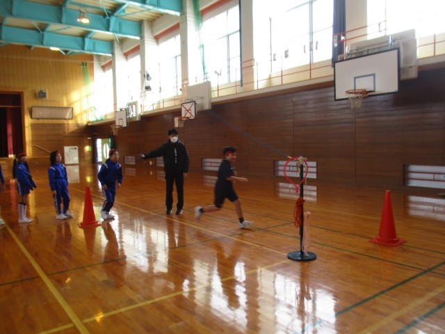 3学期最初の体育の時間に大縄跳びの練習をしました。タイミングよく縄に入ることや、ひっかからないで跳ぶことをめあてにがんばっています。