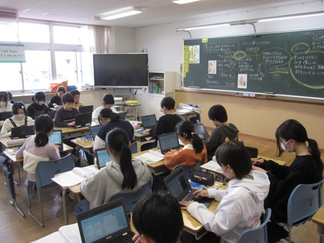 道徳では「ブランコ乗りとピエロ」という教材を基に、「広い心」について話し合いました。「まずは相手を受け入れる」「苦手な人でもよいところを見付ける」という発言がありました。振り返りは、毎時間クロムブックに書きためています。お話を通して、主人公と自分を重ねながら、自分の心と向き合う時間です。
