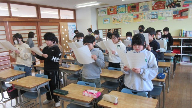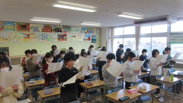 卒業式に歌う歌が決まり、さっそく練習を始めました。みんなで最後のハーモニーをつくり上げます。