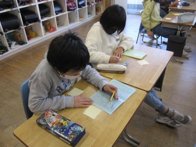 国語の時間です。自分だけの詩集を作り、友達と読み合い、コメントを書いていました。