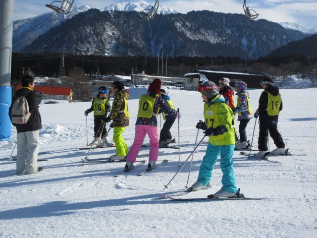 今日は天気に恵まれ、絶好のスキー日和でした。インストラクターの方のご指導のもとみんな、スキーの腕を上げつつ楽しんできました。