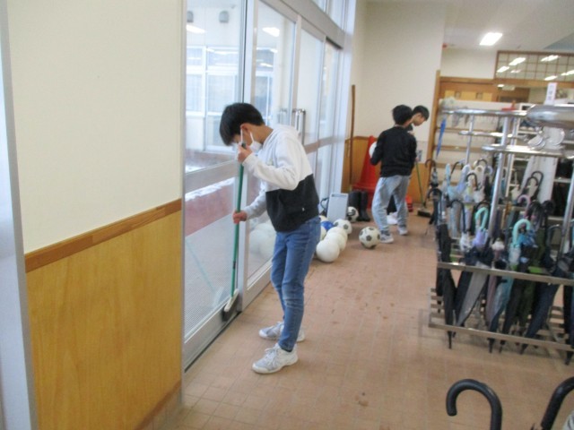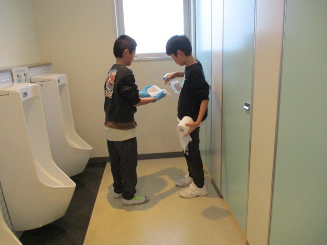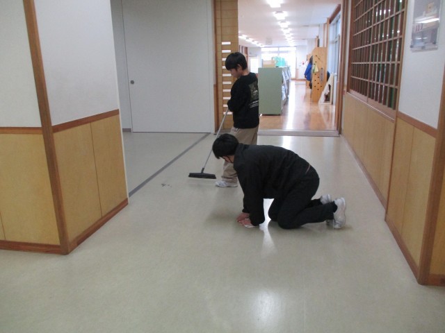 家庭科ではそうじの学習をしています。「学校そうじのスペシャリストを目指して」を合い言葉に、自分で選んだ場所のよりよいそうじ方法を考え、今日は実際にそうじをしました。そうじは「上から下」「奥から手前」にするなど、基本を大切に、その場所に応じたそうじの仕方を工夫しながら一生懸命取り組んでいました。
