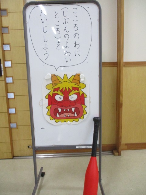 昨日の節分から1日遅れて本校にも鬼がやって来ました。各教室を回り、何やらつぶやいた後去っていきました。心の鬼(自分の弱いところ)に打ち克てる心をもちたいですね。