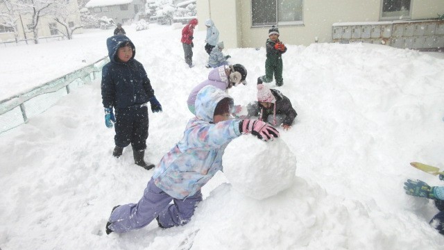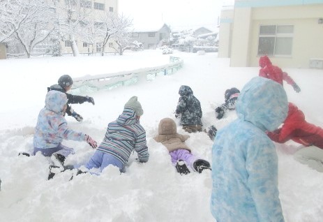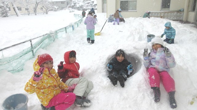 本日、大成っ子ガーデンで雪遊びをしました。雪玉を大きくしたり、かまくらを掘ったりと雪遊びを楽しんでいました。また、友達がしている遊びに興味をもって一緒に活動するなど、なかよく関わっていました。スキーウェアや着替え等の準備をしていただき、ありがとうございました。