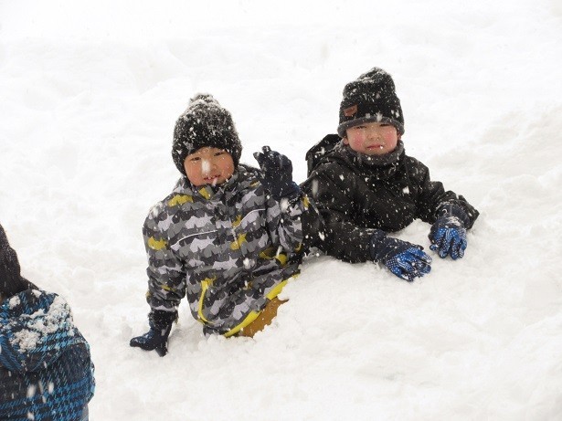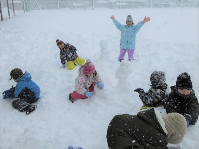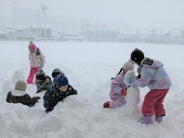 生活科「冬を楽しもう」の学習で、今日はたくさん降り積もった雪の中で思い切り雪遊びを楽しみました。新雪の上に寝転んだり、雪だるまを作ったり、そして深い雪の上を泳ぐように移動したりと、友達と雪と触れ合いました。子供たちにとっては、雪はうれしい贈り物だったようです。