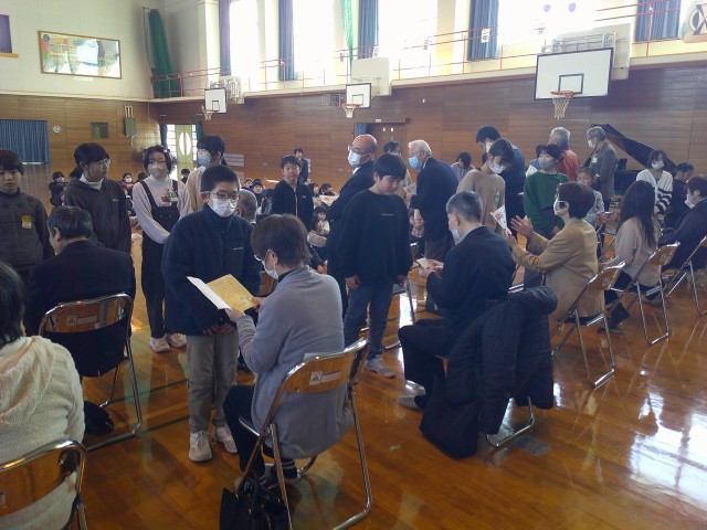 感謝の手紙を渡し、「ありがとうの花」の歌のプレゼントをしました。短い時間でしたが、地域の方々を知るよい機会となり、いつも感謝の心をもって生活する大切さを学びました。お越しいただいた皆様、どうもありがとうございました。これからも大成っ子をどうぞよろしくお願いいたします。