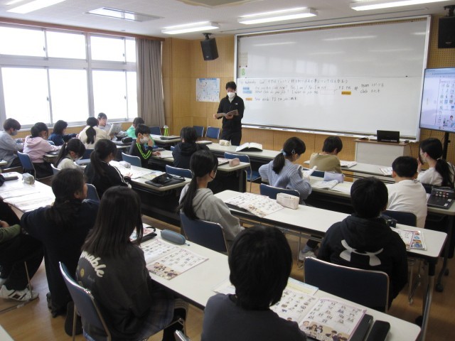 外国語の時間です。入ってみたい部活動や将来の夢について英語を使って話します。職業に関する英単語がたくさん出てきました。