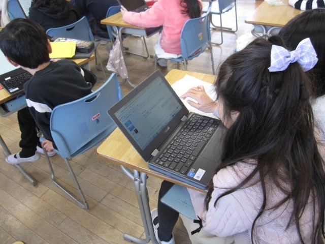 総合的な学習で調べてきた「大成のすてき」をクロムブックや新聞でまとめていました。