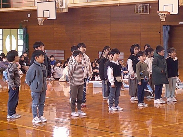 今日は、卒業を祝う会がありました。1年生は、6年生と手をつないで入場です。なんだか自分たちまでうれしくなる瞬間だったようです。これまで、6年生に教えていただいたことを呼びかけや替え歌にして伝えました。また、「きらきら星」の楽器演奏にあわせてけん玉の技も披露しました。6年生の方から「ほ~っ」っと感心したような声が上がり、とてもうれしい様子でした。残りの日々を一緒に楽しく過ごしていきたいと願っています。