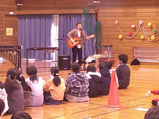 河合さんには一曲ご披露いただき、さらに全校合唱「ありがとうの花」のギター伴奏までしていただきました。最後は6年生にプレゼントまでいただき、感謝の気持ちでいっぱいです。