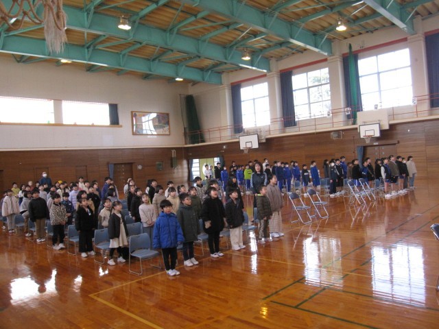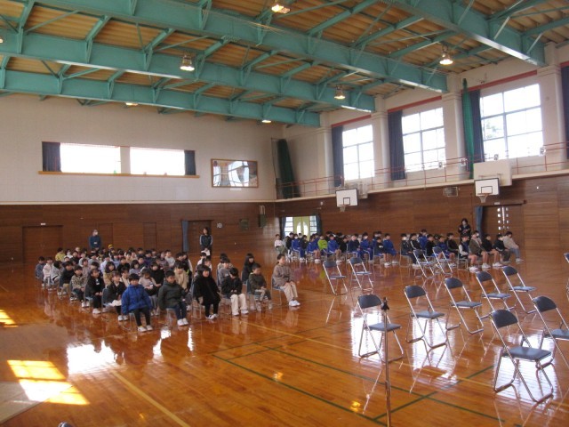 卒業式に向けて体育館で在校生の練習がありました。短い時間ですが真剣に取り組んでいました。歌声や呼びかけで、6年生をお祝いします。