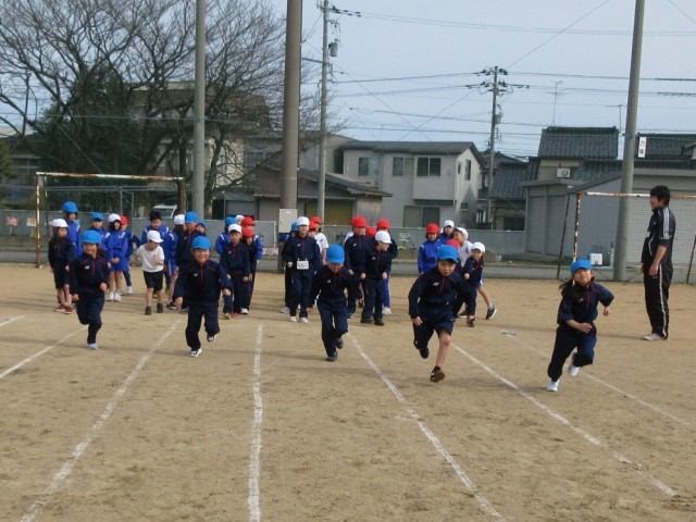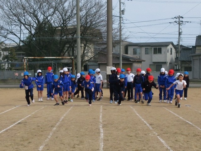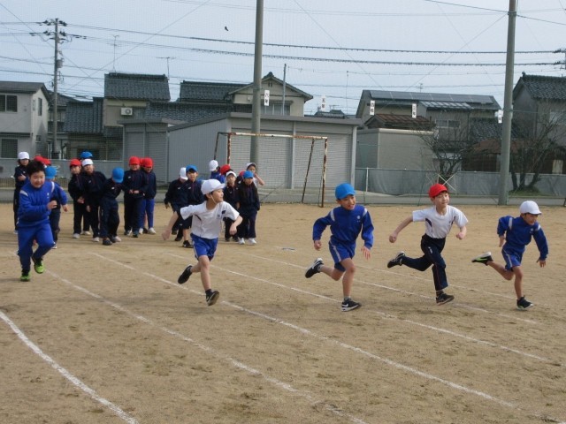 スキップやスタートダッシュ等をして体をほぐした後、50m走を計りました。
