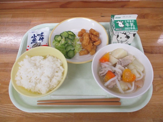 3月21日(金)の給食 公開日 2025/03/21 更新日 2025/03/21 学校からのお知らせ 今日の給食は、ごはん、牛乳、いかのかりん揚げ、きざみ和え、塩肉じゃが、味付け小魚です。 今年度最後の給食です。1年間おいしく、安全に給食を提供していただいたことに感謝しながらいただきます。