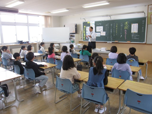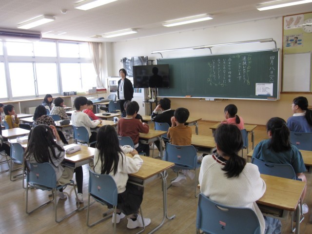 学級開きの様子です。新しい担任の先生の自己紹介やどんな学級になってほしいかなどお話しになりました。新しい教科書が配られ、これからの一年が楽しみな様子でした。