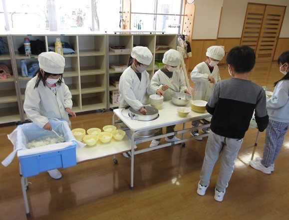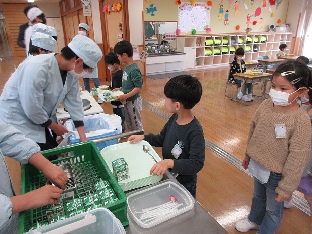 二日目からは自分たちで準備をしました。初めてとは思えないくらい、こぼすこともなく、とても上手に配膳ができました。