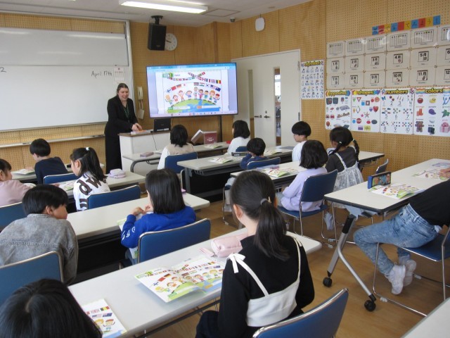 3年生になって初めての外国語活動の時間です。ALTは昨年度イマージョンALTとして本校に来ておられた先生です。いろいろな国の国旗を見て、国の名前を発音していました。