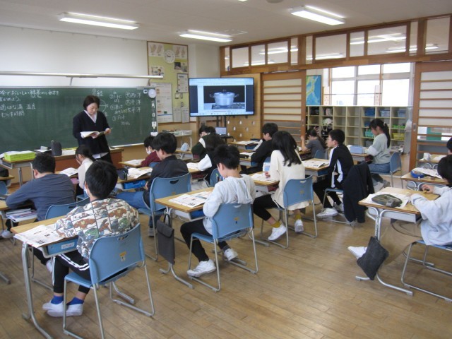 家庭科の時間です。次回は、お湯を沸かして、お茶を飲みます。ガスコンロの使い方、お湯の沸かし方について動画を見ながら学習していました。