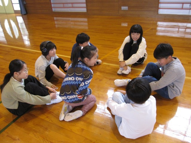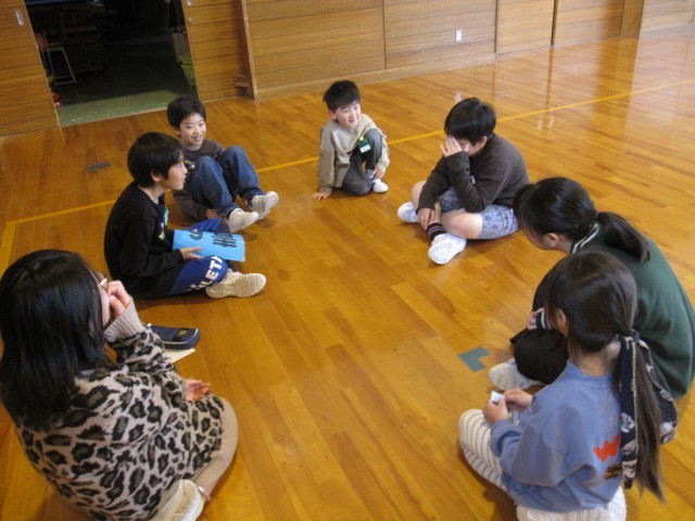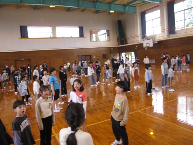 入学を祝う会に引き続き、ファミリー発足式がありました。新しいファミリーで集まり、自己紹介をしたり簡単な遊びをしたりしました。最後に全校で「レッツゴー明日へ」を歌いました。これから一年間、ファミリーで協力し合って活動しましょう。