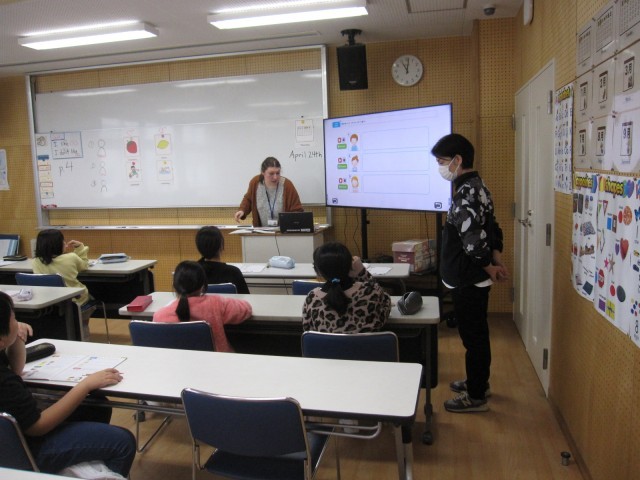 外国語の時間です。「I like 〇〇.」「I don't like 〇〇.」の表現を使った英文を注意深く聞き取っていました。