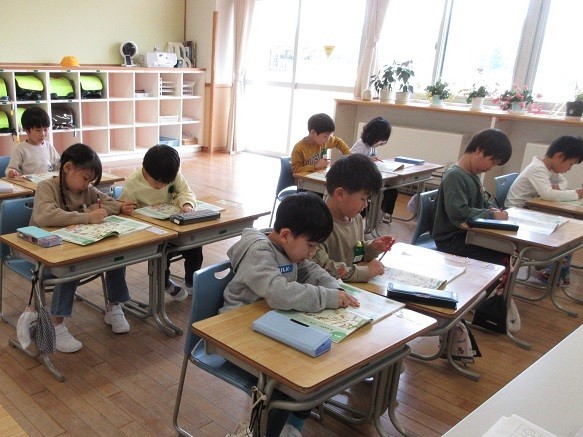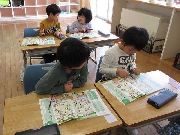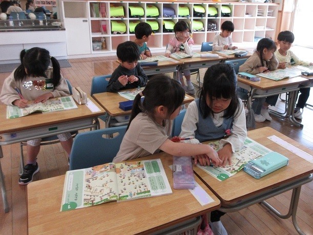 道徳の時間に、学校生活の様子のイラストを見て、「気持ちよく過ごせているか」を考えました。最初は、一人一人がじっくりとイラストの中から課題について見付けようと取り組みました。その後、ペアになって自分の考えを話していました。「この子、友達を助けていて優しいね」「こんなことしたら、嫌な気持ちになるよね」など、イラストを指さしながら熱心に伝え合っていました。