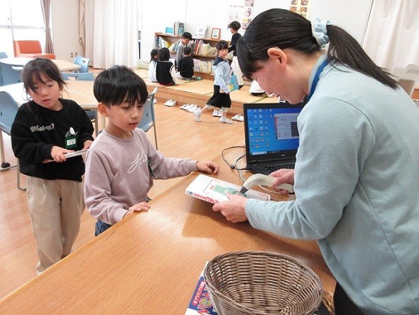 今日は図書室オリエンテーションがありました。図書館司書の先生から図書室利用の約束を紙芝居で教わり、その後本の借り方を教えてもらいました。子供たちはたくさんある絵本の中から1冊を選び、正しく手続きをしました。これから、図書室へ積極的に行き、たくさんの本と出会ってほしいと思います。