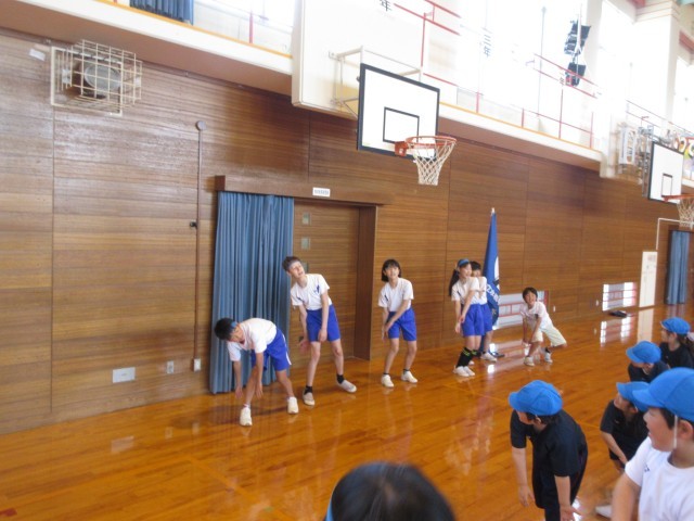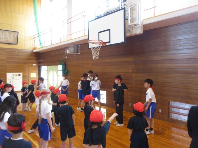 今日は、結団式がありました。これまで考えてきた応援を紹介し、1~5年生と一緒に練習しました。友達と協力しながら、応援練習を一生懸命進めていました。今後の練習でも最高学年として、がんばる姿が楽しみです。