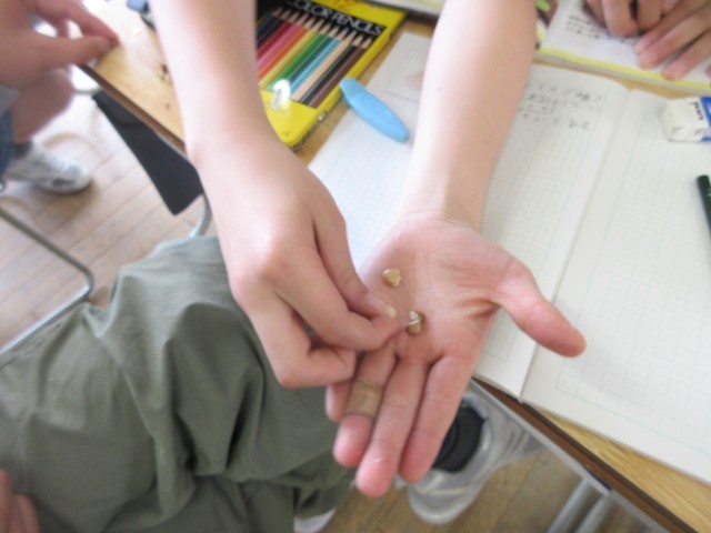 インゲン豆を観察する中で、「豆を切ってみてもいいですか?」との声。