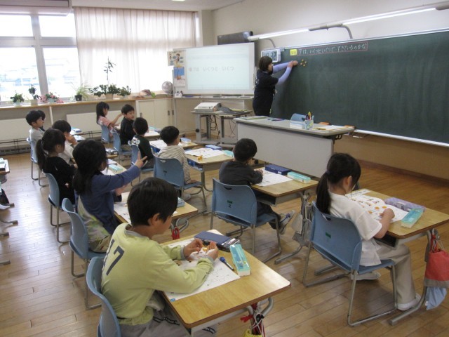 算数「いくつといくつ」の学習です。ブロックを使って、先生が隠した数を当てています。