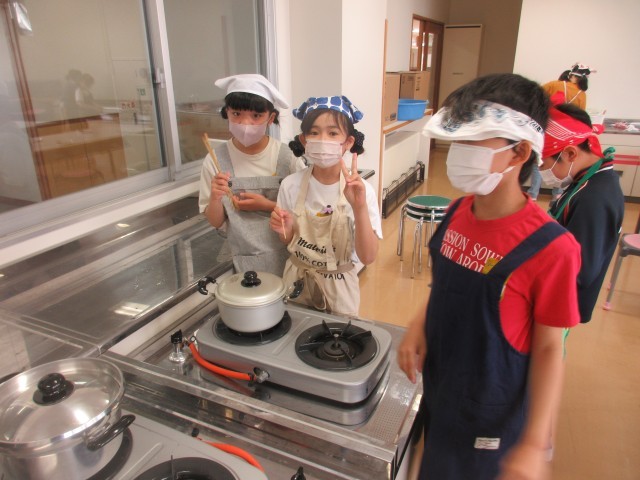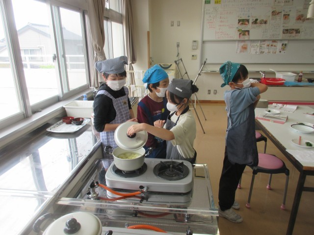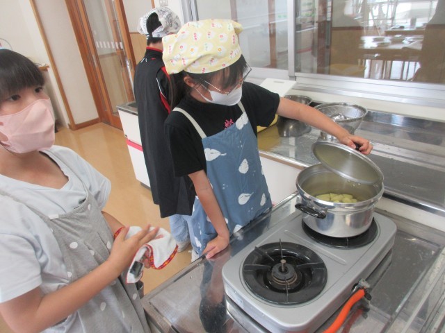 今回は「ゆでる」調理を行い、ほうれん草とジャガイモをどのグループも上手に調理することができました。
