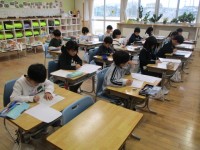 今日の給食は、コッペパン、牛乳、オムレツ、きのこと豆のアヒージョ、ポトフです。