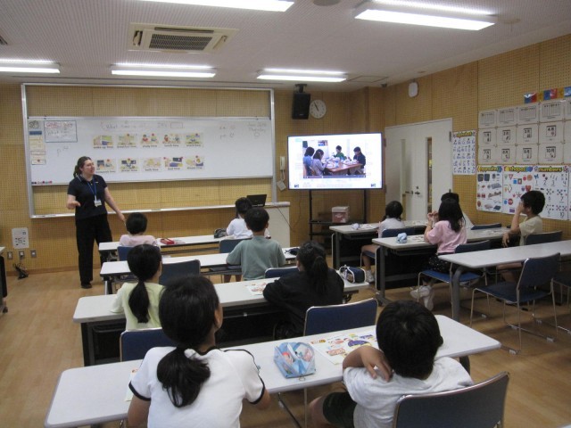 外国語活動「What time is it?」では、今何時なのか、何をしている時間なのか、英語の発音をよく聞いていました。