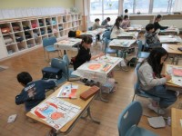 音楽の時間には、水橋学園の校歌を練習しています。その後、日本語の歌曲について学...