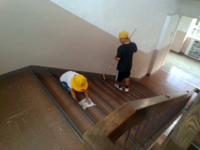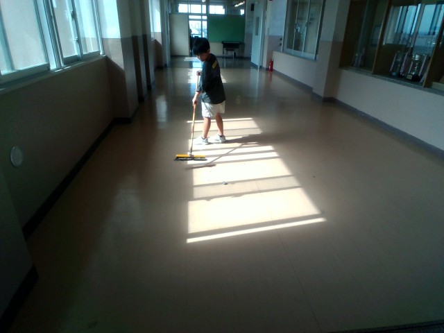 終業式の前に、一学期お世話になった校舎をピカピカにしています。