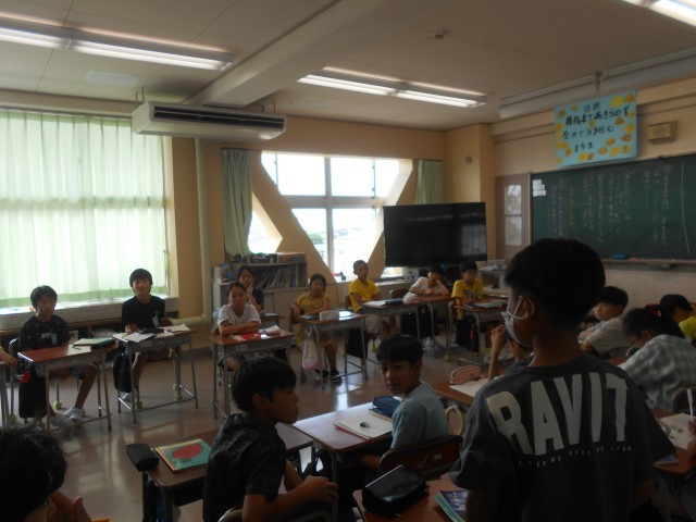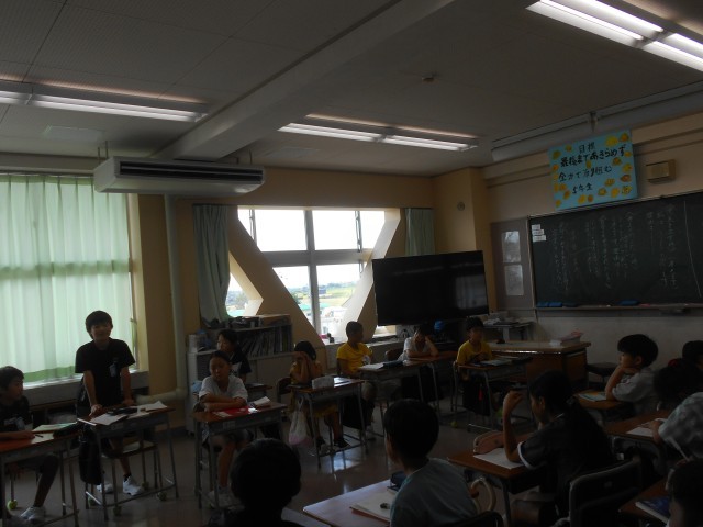 みんなで討論会をしました。「校外学習へ行くとしたら海か山か」という話題で話し合いました。