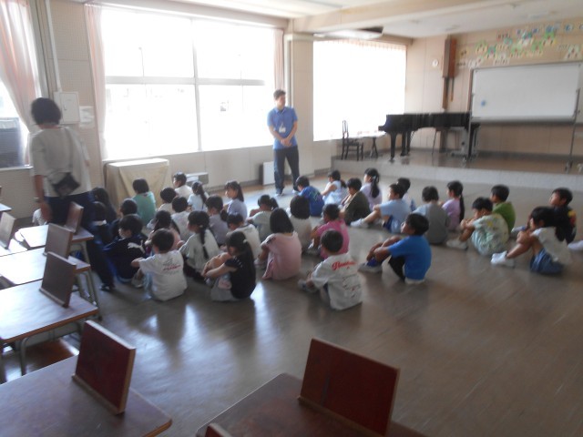 3年生以上の子供たちは、教室が3階にあるので自級へ避難し、1、2年生の子供たちは、教室が2階にあるので3階の音楽室へ避難します。