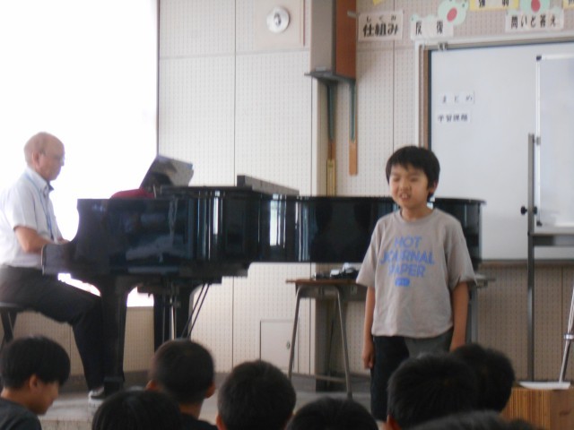 今日は、音楽指導の先生をお招きして歌うコツをご指導いただきました。