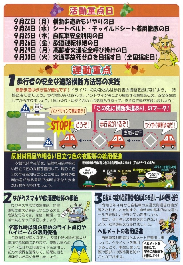 今後、日没時刻が早まります。暗くなる前に家へ帰りましょう。