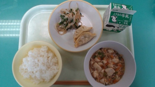 マーボー豆腐は彩りがいいです。バランスがよい証拠ですね。ねぎやたけのこ、ひき肉の食感もよく、おいしくいただきました。