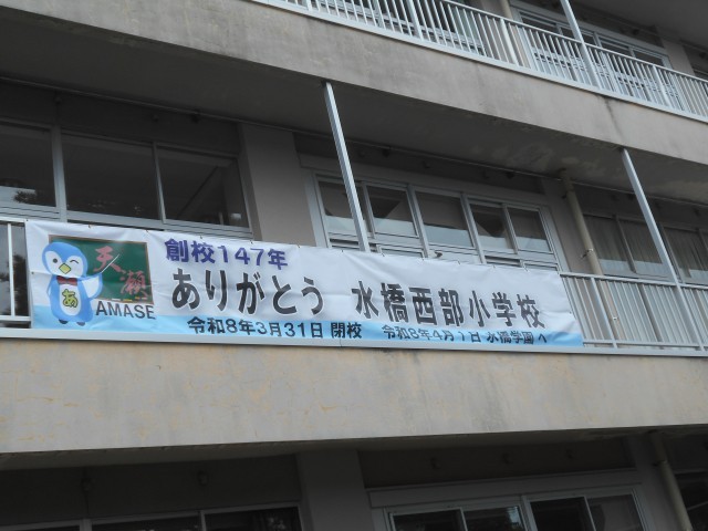水橋西部教育振興会様より、閉校記念の横断幕をいただきました。