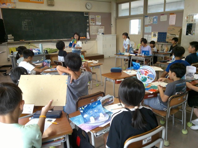 3年生の図工では、鑑賞会をしました。自分で作ったわりピンワールドの1分以内スピーチをして、みんなで遊びました。次は粘土を予定しています。お楽しみ!