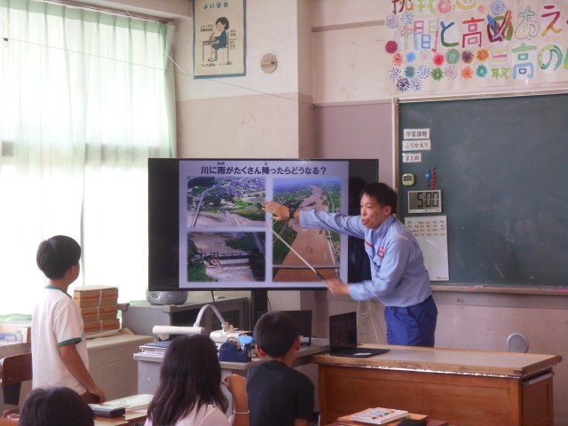 4年生の社会科の学習に、国土交通省 富山河川国道事務所の方々がゲストティーチャーとして来てくださいました。