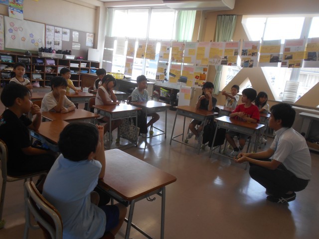 家族と温泉へ行く話を自分の言葉で伝えるAさんの話を、学級の仲間たちは自分と重ねながら聴いていました。