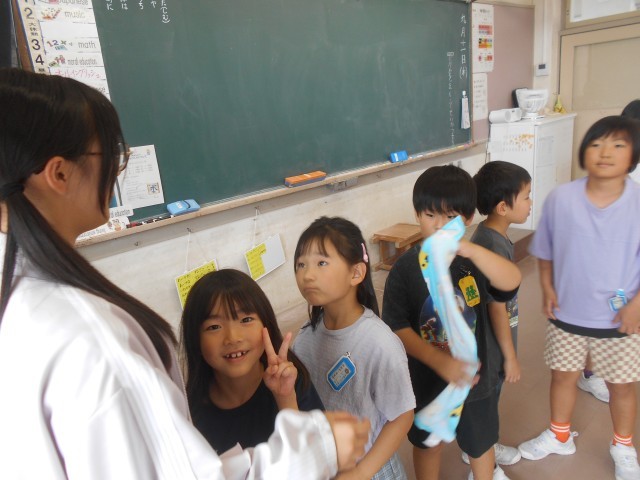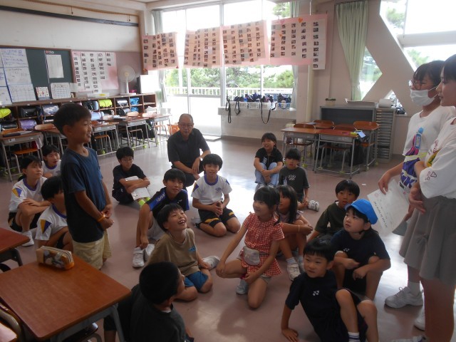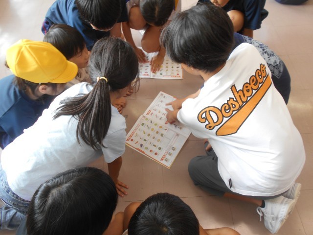 昼休憩に縦割り班で集まり、ハンカチ落としや新聞じゃんけん等をして遊びました。